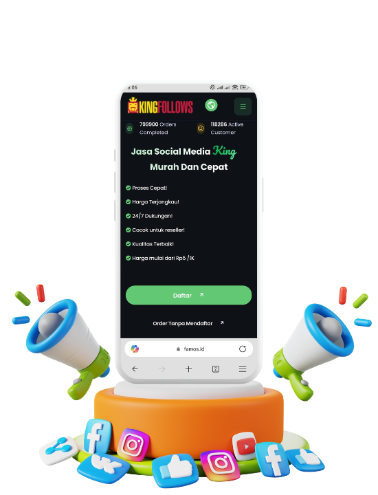 ngin meningkatkan popularitas dan interaksi di TikTok dengan cepat dan efektif? SMM Panel Malaysia Murah dan Cepat dari kingfollows.com adalah solusi tepat untuk Anda. Kami menyediakan layanan pembelian TikTok followers, likes, dan views berkualitas dengan harga termurah, yang dapat membantu meningkatkan kredibilitas dan visibilitas akun Anda. Mengapa memilih kingfollows.com untuk membeli followers, likes, dan views TikTok? Kami menawarkan layanan dari akun-akun aktif dan nyata yang akan meningkatkan reputasi akun Anda. Dengan memiliki lebih banyak followers, likes, dan views, konten Anda akan terlihat lebih menarik dan tepercaya, menarik lebih banyak pengikut organik dan meningkatkan interaksi dengan konten Anda. Proses pembelian followers, likes, dan views di kingfollows.com sangat mudah dan cepat. Pilih paket yang sesuai dengan kebutuhan Anda, dan dalam waktu singkat, jumlah followers, likes, dan views di akun TikTok Anda akan meningkat. Kami juga menyediakan dukungan pelanggan yang responsif untuk memastikan Anda mendapatkan pengalaman terbaik. kingfollows.com adalah pusat SMM panel terbaik di Malaysia, menyediakan berbagai layanan SMM termasuk pembelian followers, likes, dan views untuk berbagai platform media sosial. Dengan harga yang kompetitif dan layanan yang andal, kami siap membantu Anda mencapai tujuan pemasaran media sosial Anda. Percayakan kebutuhan SMM Anda pada kingfollows.com dan rasakan manfaatnya. Tingkatkan popularitas dan interaksi di TikTok dengan memiliki akun yang lebih populer dan tepercaya. kingfollows.com, solusi SMM panel Malaysia terbaik untuk Anda.